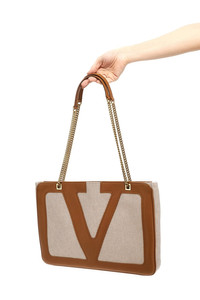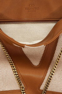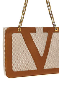cod. 6W0B0R13GLR9QR Medium 'Viva Superstar' canvas shopping bag with contrasting leather maxi VLogo Signature, double sliding leather and chain handle, zip closure, back zip pocket. Color: Beige Size & Fit: W 37 x H 26 x D 2 cm Composition: 100% cotton Made in: Italy