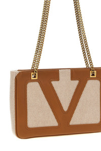cod. 6W0B0R14GLR9QR Small in canvas 'Viva Superstar' shopping bag with contrast maxi VLogo Signature leather, double sliding leather and chain handle, zip closure, back zip pocket. Color: Beige Size & Fit: W 27 x H 18 x D 3 cm Composition: 100% cotton Made in: Italy