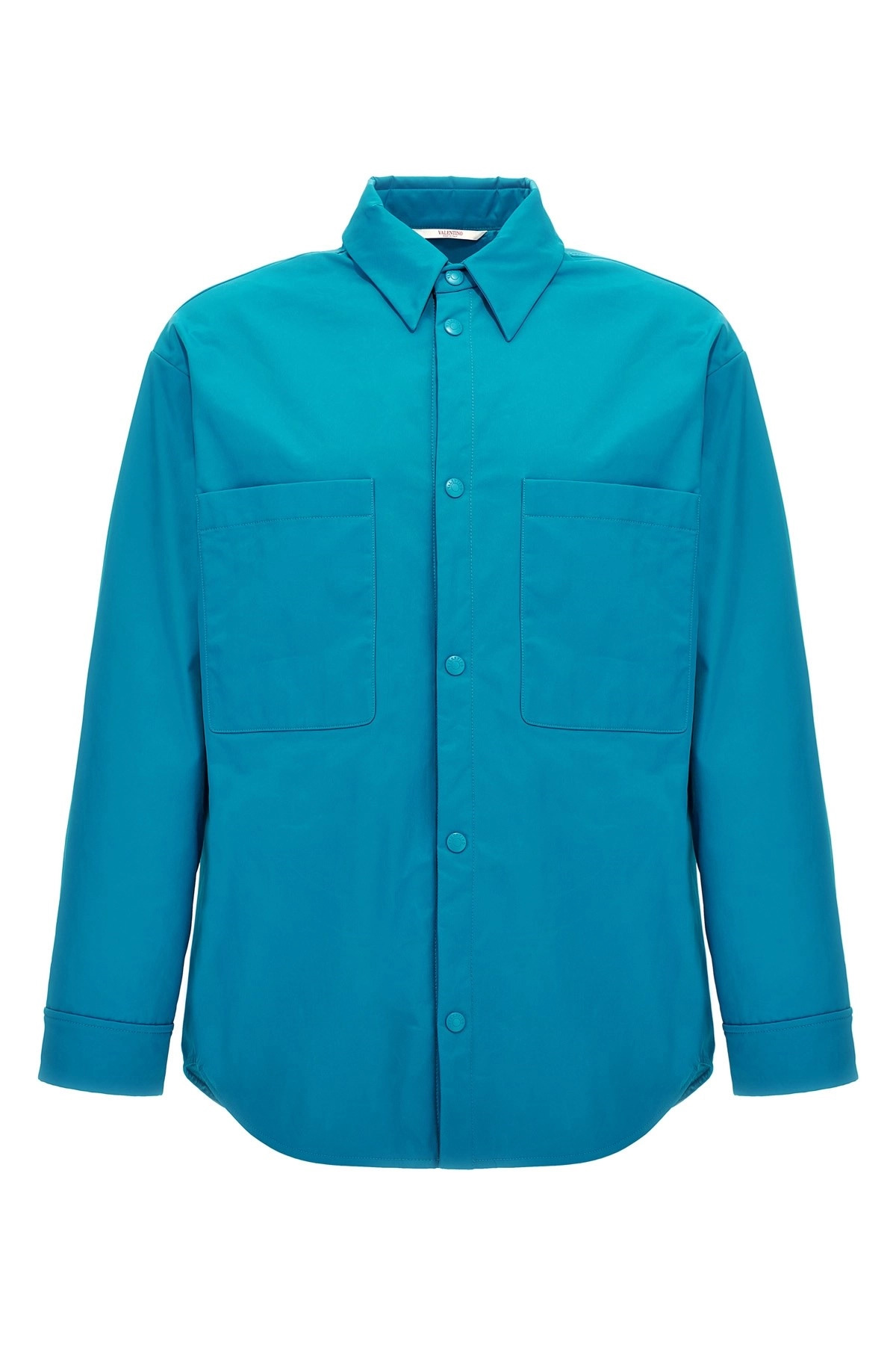 cod. 5V0CIO85CKV575 Lined and slightly padded nylon shirt jacket, button closure, front pockets, long cuffed sleeves. Color: Light Blue Size & Fit: oversized fit Composition: 64% polyester, 36% elastomultiester Made in: Italy
