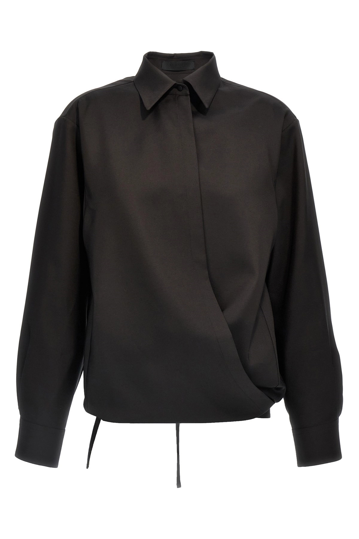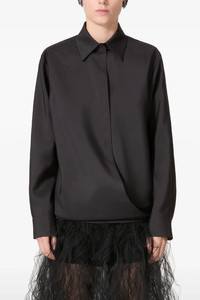 cod. 5B0AB6T58Y10NO Techno light wool fabric shirt with button collar, drawstring wallet closure, long cuffed sleeves. Color: Black Size & Fit: Comfort size Composition: 43% wo, 35% wm, 22% se Made in: Italy