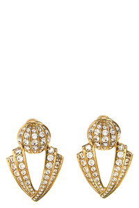 cod. 6W0J0Y95YCW9MN 'Poetique Des Gouttes' earrings in gold metal and crystals Swarovski® all-over, clip-on closure. ITEM CANNOT BE RETURNED Color: Gold Size & Fit: W 4 x H 6 cm Composition: 100% brass Made in: Italy