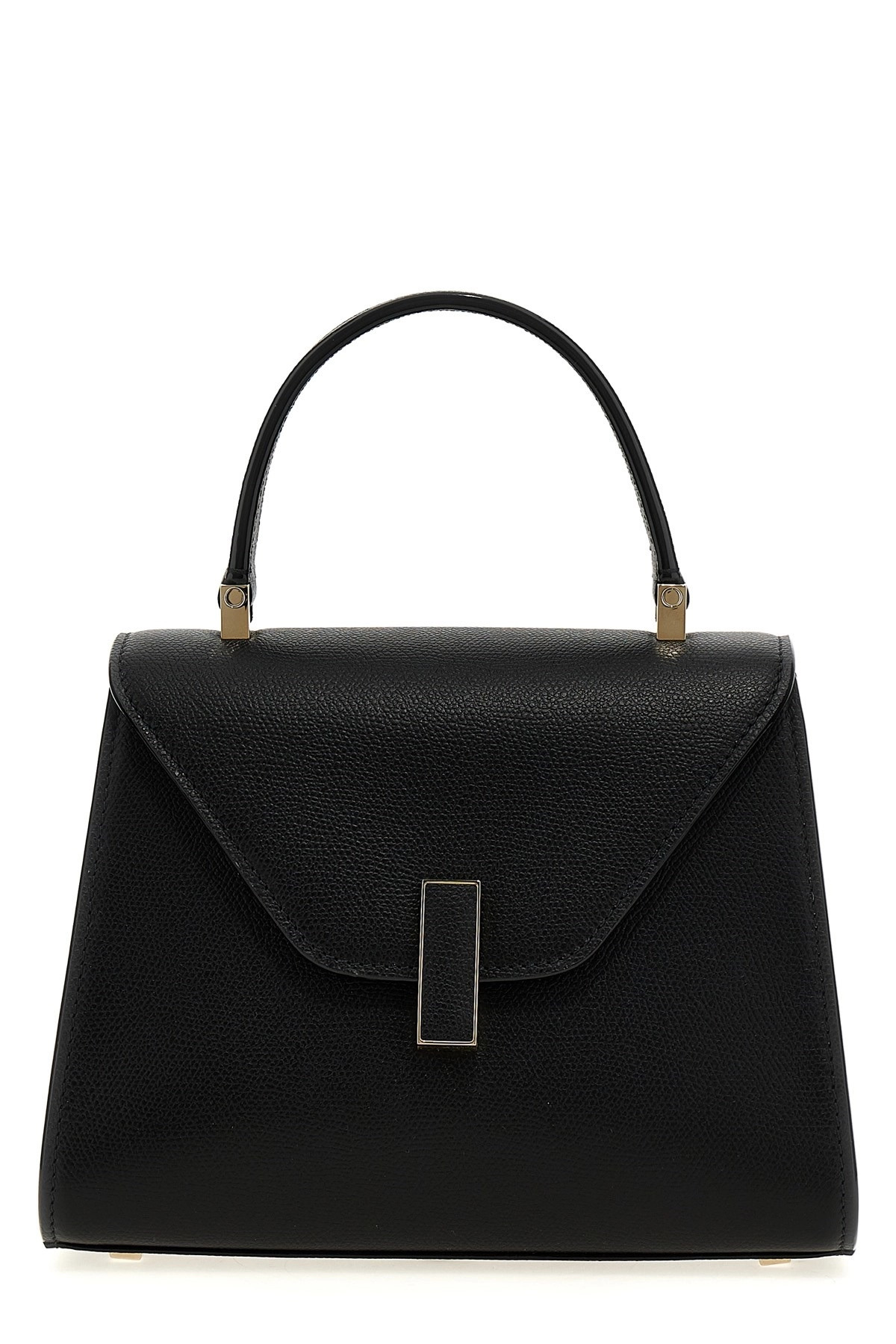 cod. WBES0036028LOC99NN Small 'Iside' handbag in Millepunte calf leather, Costa Valextra piping, fixed handle, flap turn-up closure, metal details, adjustable and removable shoulder strap. Color: Black Size & Fit: W 22 x H 16 x D 12 cm Composition: 100% calfskin leather (Bos Taurus) Made in: Italy