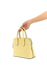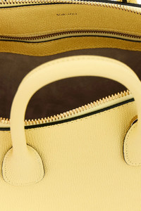 cod. WBML0041028LOC99JA 'MyLogo' mini handbag in Millepunte leather, Costa Valextra hand-lacquered piping, Bowling model, double fixed tubular handle, top zip closure with zip puller to be fixed on the side with metal safety swivel, rigid base with metal feet, adjustable and removable shoulder strap, suede lining. Color: Yellow Size & Fit: W 25 x H 19 x D 10 cm Composition: 100% calfskin leather (Bos Taurus) Made in: Italy