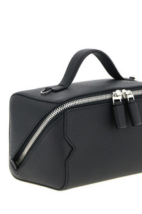 cod. SGVL0008010LRLTA99NN 'V-Line' beauty case shoulder bag in Millepunte leather, fixed handle, asymmetric zip, Costa Valextra piping, removable shoulder strap with hooks. Color: Black Size & Fit: W 18 x H 10.5 x D 10.5 cm Composition: 100% calfskin leather (Bos Taurus) Made in: Italy