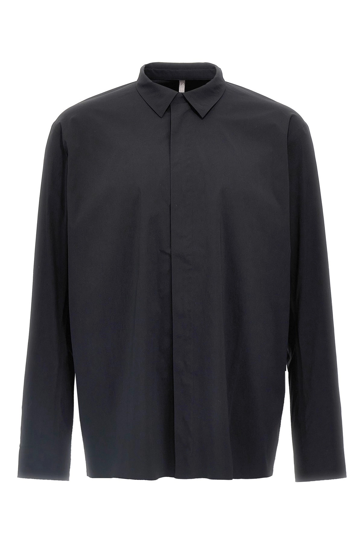 cod. X000009122BLACKSAPPHIRE 'Metry LS' stretch nylon shirt, front zip and hidden snap button closure, long cuffed sleeves. Color: Gray Size & Fit: true to size fit Composition: 93% nylon, 7% elastane Made in: Vietnam PROMO CODE NOT APPLICABLE