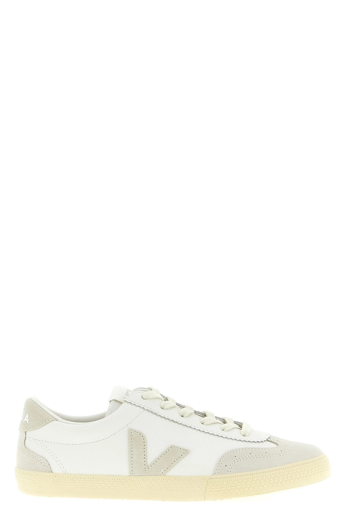 cod. VO2003852WHITENATURAL O.T. leather 'Volley' sneakers with suede inserts, lace-up closure, rubber sole. SUSTAINABLE: O.T. (Organic Traced) leather comes from 100% certified organic farms in Uruguay. Color: Beige Size & Fit: EU MEN Composition: 100% organic traced leather Made in: Brazil