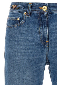 cod. 10141031A100231D030 Denim jeans, flared at the ankle. Metallic jellyfish detail at the waist. Color: Blue Size & Fit: true to size fit Composition: 100% cotton