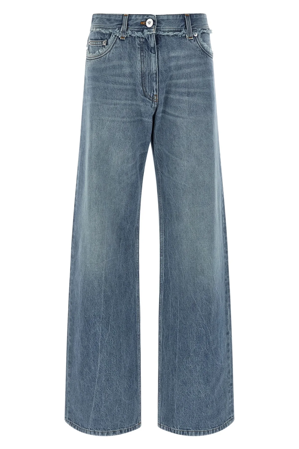 cod. 10230641A170461D800 Cotton denim jeans with fringed trimming details, 5-pocket style, zip and button closure, leather back logo tag. Color: Blue Size & Fit: True to size fit Composition: 100% cotton Made in: Italy