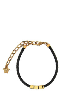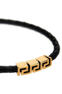 cod. 10227921A006371B00V Braided calf leather bracelet with sliding and adjustable metal 'Greca' detail, snap hook closure. Color: Gold Size & Fit: one size - W 17-24 cm Composition: 100% calfskin leather (Bos Taurus) Made in: Italy