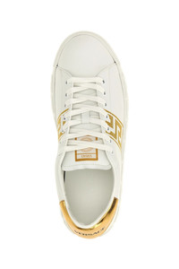 cod. 10144601A007762W110 Leather sneakers with 'Greca' embroidery, laces and rubber sole. Color: Gold Size & Fit: EU MEN Composition: 100% polyamide Made in: Italy