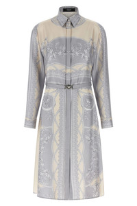 cod. 10186221A133595E450 'La Coupe des Dieux' print silk twill dress, chemisier model, button closure, long sleeves with cuffs, pockets, elastic belt with removable metal buckle. Color: Multicolor Size & Fit: true to size fit Composition: 100% silk Made in: Italy