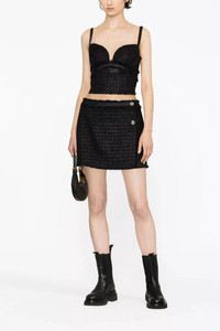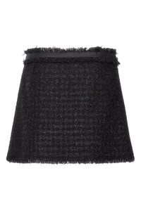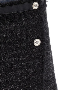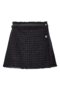 cod. 10109151A065451B000 Lurex wool blend skirt with Medusa button wallet closure. Color: Black Size & Fit: True to size fit Composition: 63% virgin wool 37% polyamide