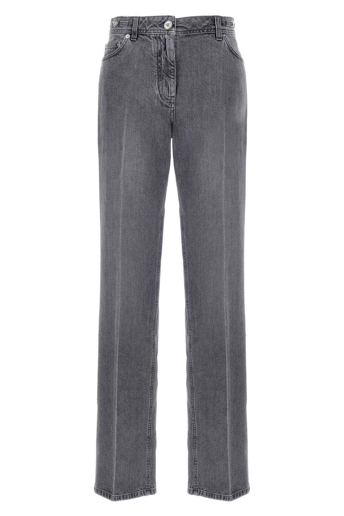 cod. 10136871A115471D280 Boyfriend jeans in cotton denim with zip and button closure, 'Medusa '95' detail at the waist, five pockets, leather logo tag. Color: Gray Size & Fit: true to size fit Composition: 100% cotton Made in: Italy