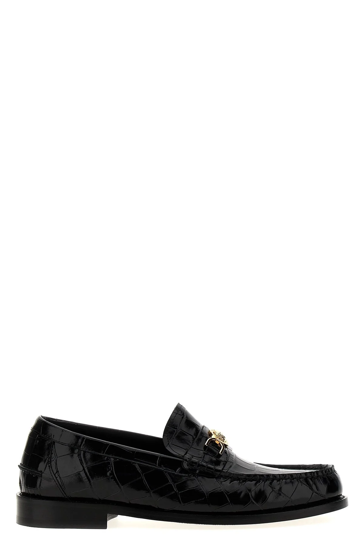 cod. 10135921A098811B00V Coconut-print leather loafers with metal 'Medusa '95' detail and leather sole. Color: Black Size & Fit: EU MEN Composition: 100% vl