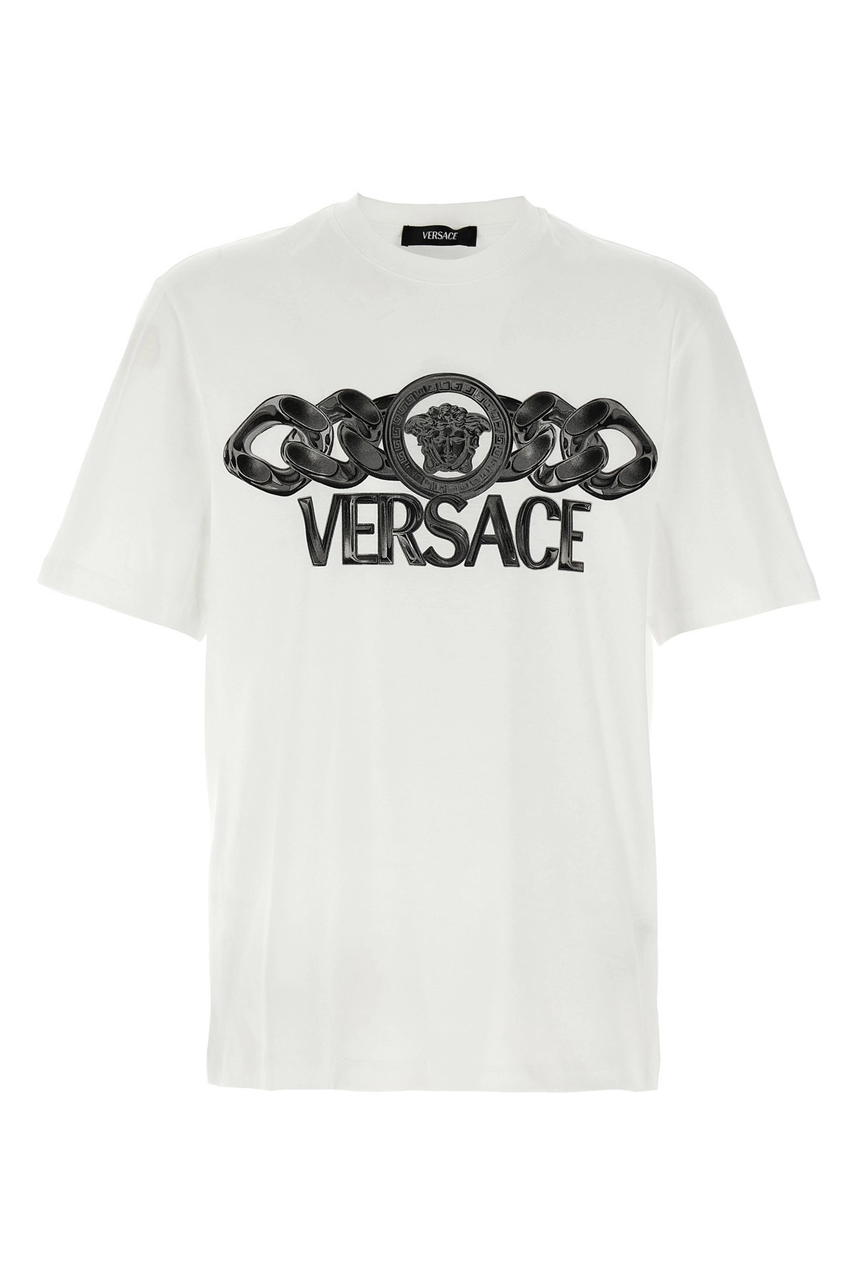 cod. 10133021A134052W580 Cotton T-shirt with front logo print with 'Medusa', crew neck, short sleeves. Color: White Size & Fit: True to size fit Composition: 100% cotton Made in: Tunisia