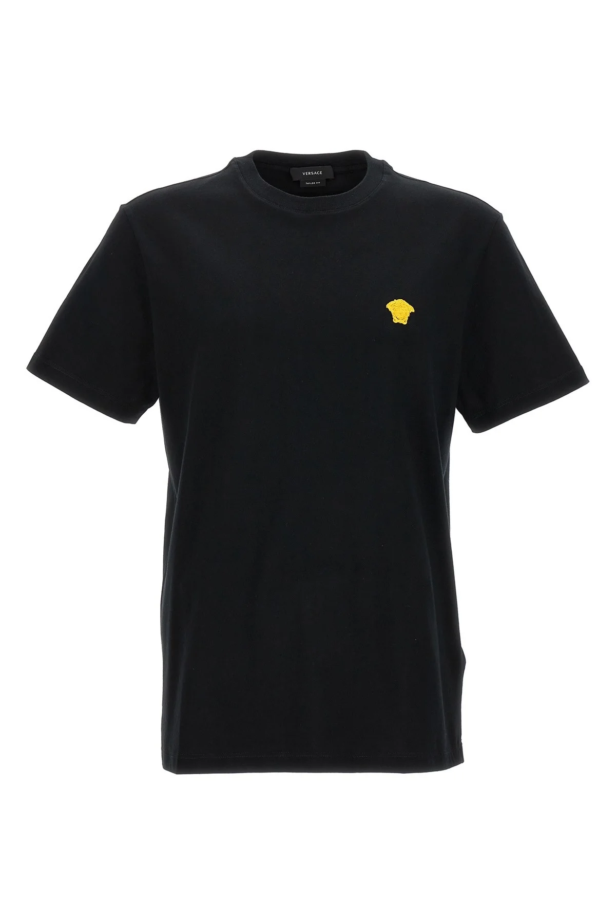 cod. 10084811A084891B000 Cotton T-shirt with 'Medusa' embroidery, crewneck, and short sleeves. Color: Black Size & Fit: true to size fit Composition: 100% cotton Made in: Tunisia