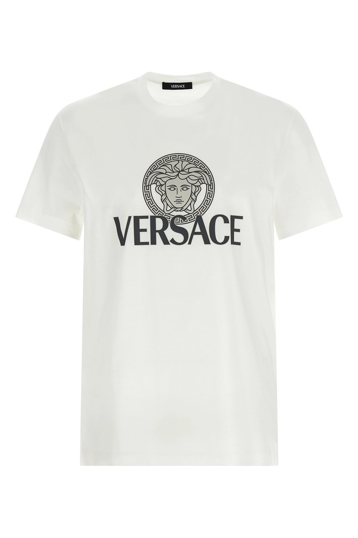 cod. 10142261A100881W000 Cotton jersey T-shirt with front 'Medusa' print, crew neck, short sleeves. Color: White/Black Size & Fit: true to size fit Composition: 100% cotton Made in: Albania