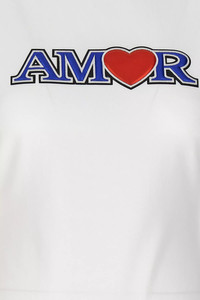 cod. WE64TR340WWHITE 'Amor' stretch cotton crew neck T-shirt with front embroidery, short sleeves. Color: White Size & Fit: Slim fit Composition: 93% cotton, 7% elastane Made in: Portugal