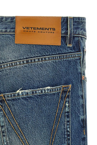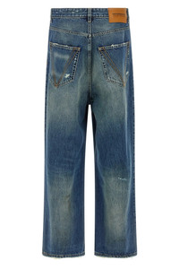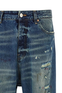 cod. UA66PA590NMIDBLUE Blue Distressed Baggy' used-effect delave-effect cotton denim jeans with rips and paint stains, button closure, five pockets, wide leg, and leather logo label on the back. Color: Blue Size & Fit: true to size fit Composition: 100% cotton Made in: Italy