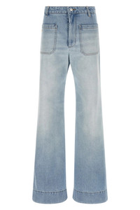 cod. 1126DJE007252CSHERITAGEBLUE 'Alina' cotton denim jeans with loose leg slightly flared at the bottom, front pockets, zip and button closure at the waist. Color: Light Blue Size & Fit: True to size fit Composition: 100% cotton Made in: Italy
