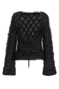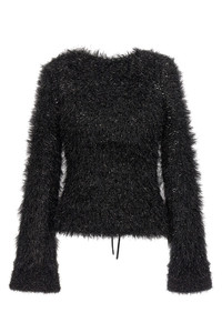 cod. 1323KJU004694ABLACK Lurex thread sweater with cut-out detail, lacing on the back, and long sleeves. Color: Black Size & Fit: true to size fit Composition: 52% pl, 35% vi, 13% pa Made in: Hong Kong