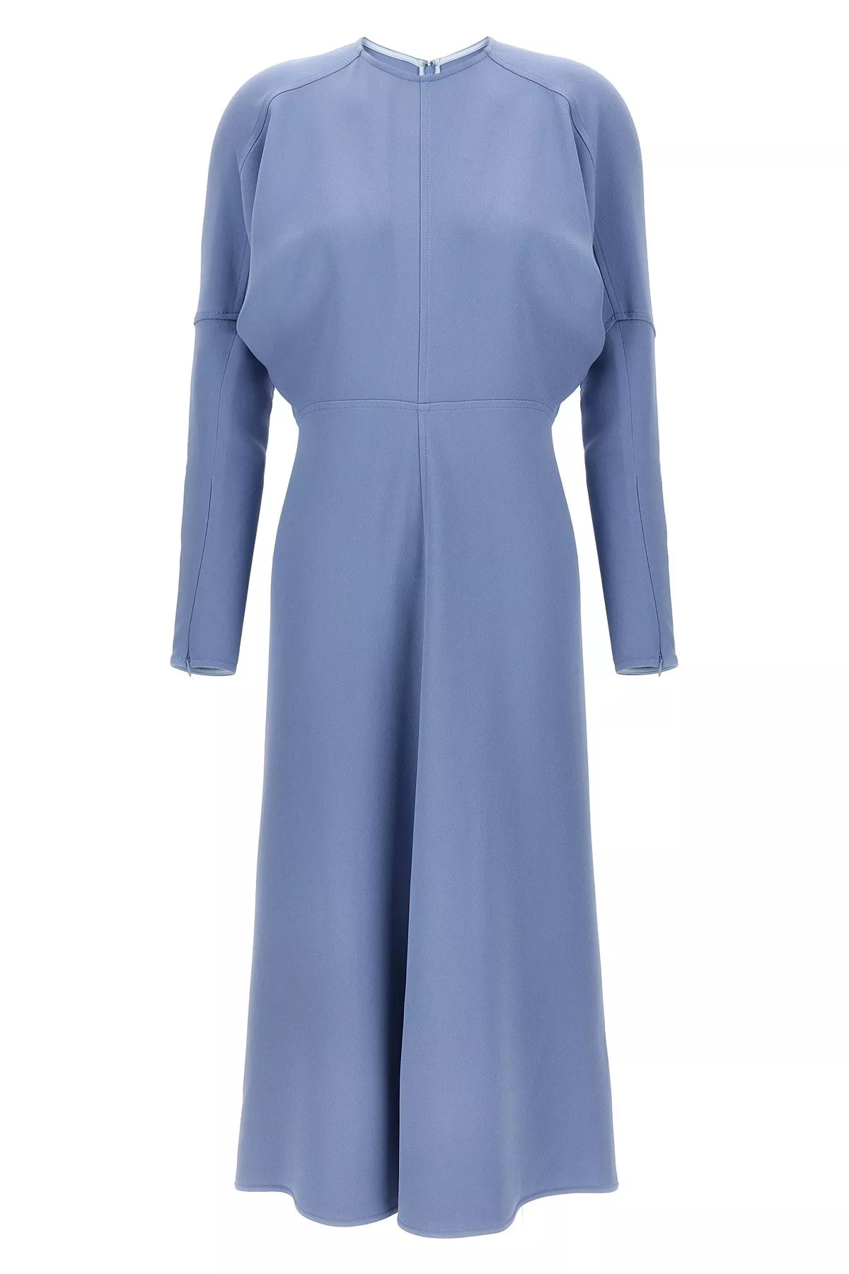 cod. 1125WDR005231ABLUEBELL 'Dolman Midi' cady dress, crew neck, long bat sleeves with zip, back zip closure. Color: Light Blue Size & Fit: true to size fit UK size Composition: 50% viscose 47% acetate 3% elastane Made in: Portugal