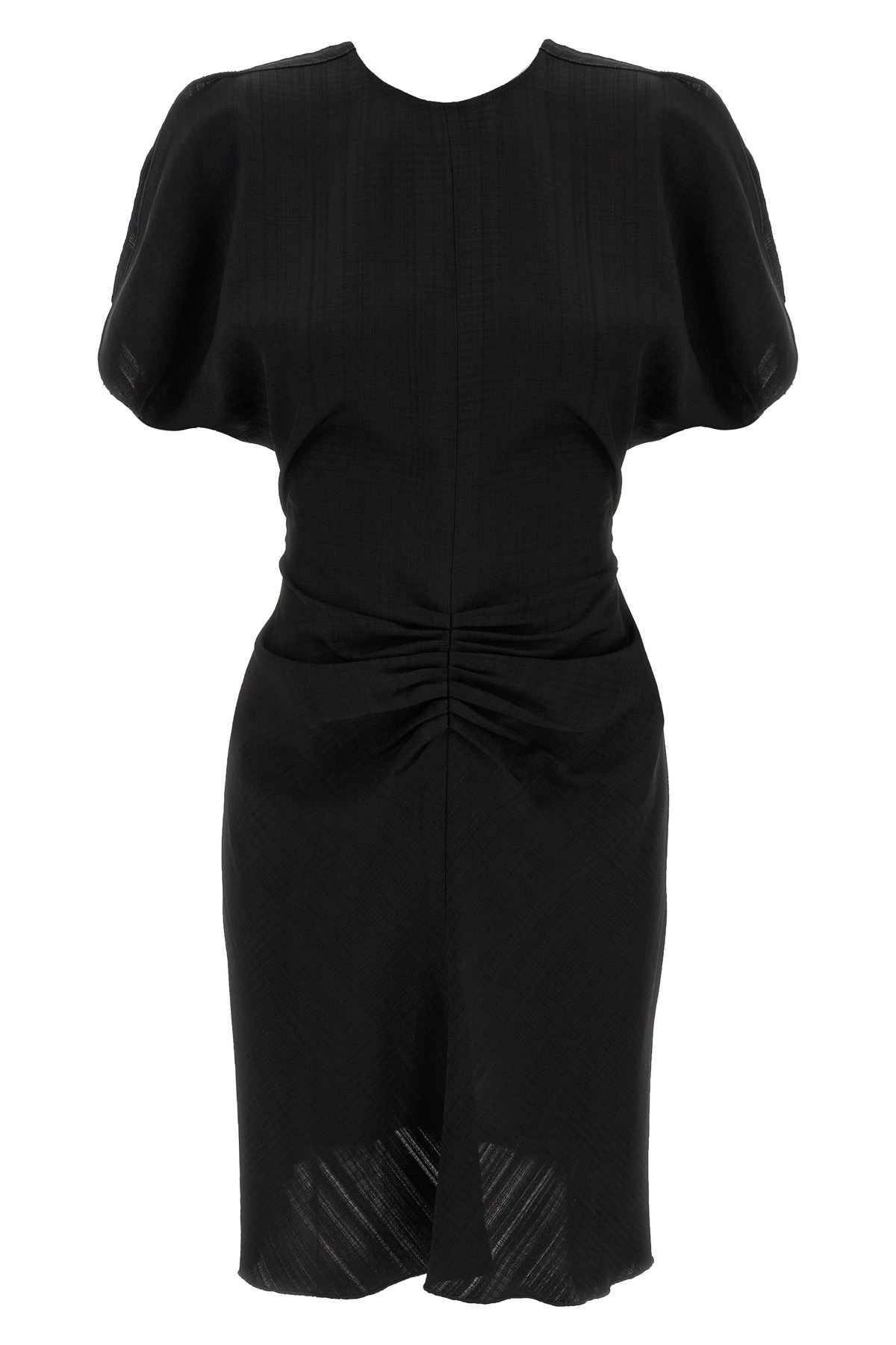 cod. 1424WDR006087ABLACK 'Gathered Waist Mini' dress in new viscose, tight at the waist with crinkled detail, front round neckline, V-neck and back zip closure, short sleeves with slits, contrast stitching. Color: Black Size & Fit: true to size fit - UK sizing Composition: 100% viscose Made in: Portugal