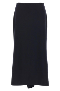 cod. 1325WSK006591CNAVY 'Kick Detail' wool crepe skirt with A-line silhouette tight on the sides, zip closure and back split, asymmetrical hem with light train. Color: Blue Size & Fit: slim fit - UK size Composition: 55% polyester 43% virgin wool 2% elastane Made in: Lithuania