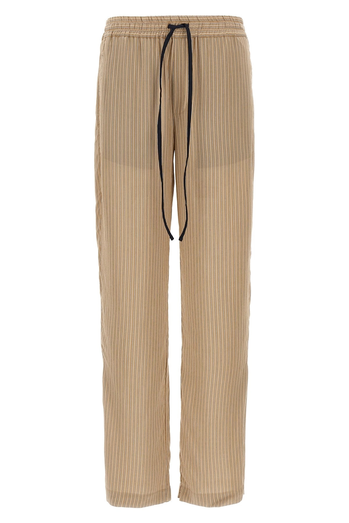 cod. 1125WTR006041ATOBACCOMIDNIGHT 'Pleat Detail Pyjama' striped viscose and silk blend trousers, adjustable drawstring elastic at the waist, pockets, wide leg, gusset at the bottom of the leg. Color: Brown Size & Fit: true to size fit - UK sizing Composition: 69% viscose, 31% silk Made in: Turkey