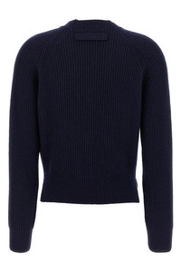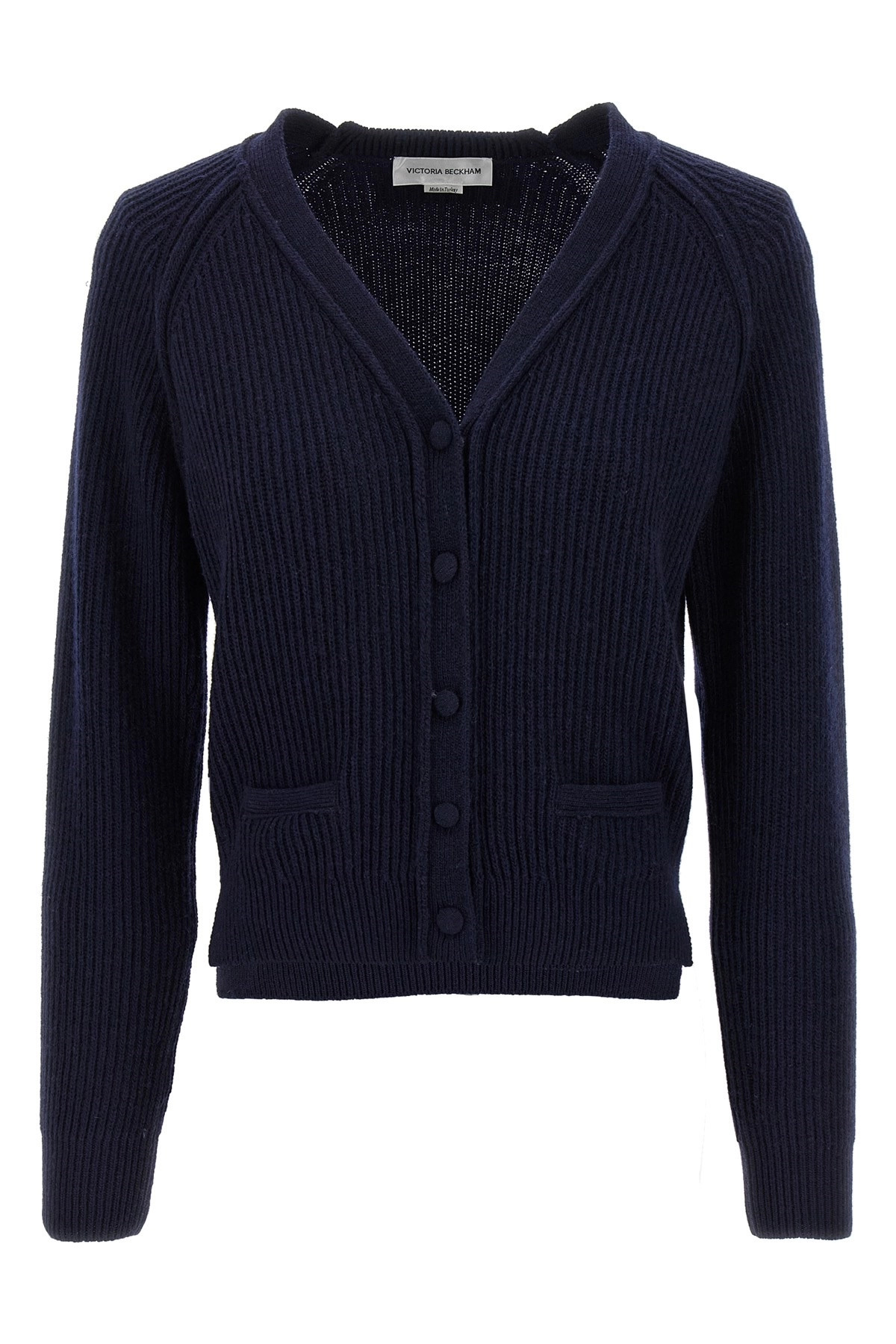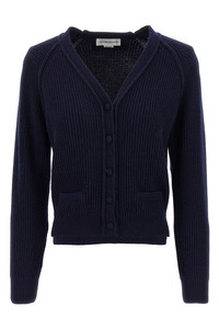 cod. 1325KJU006422ANAVY 'Stepped Hem' cashmere blend cardigan with V-neck, button closure, front pockets, side splits, long cuffed sleeves. Color: Blue Size & Fit: True to size fit Composition: 70% wo, 30% ws Made in: Turkey