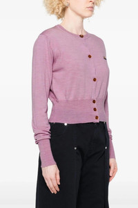 cod. 1803002UY0006G402 'Bea' cropped cardigan in melange virgin wool, with logo embroidery and front button closure, round neckline, long cuffed sleeves. Color: Pink Size & Fit: true to size fit Composition: 100% virgin wool Made in: Italy