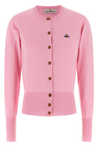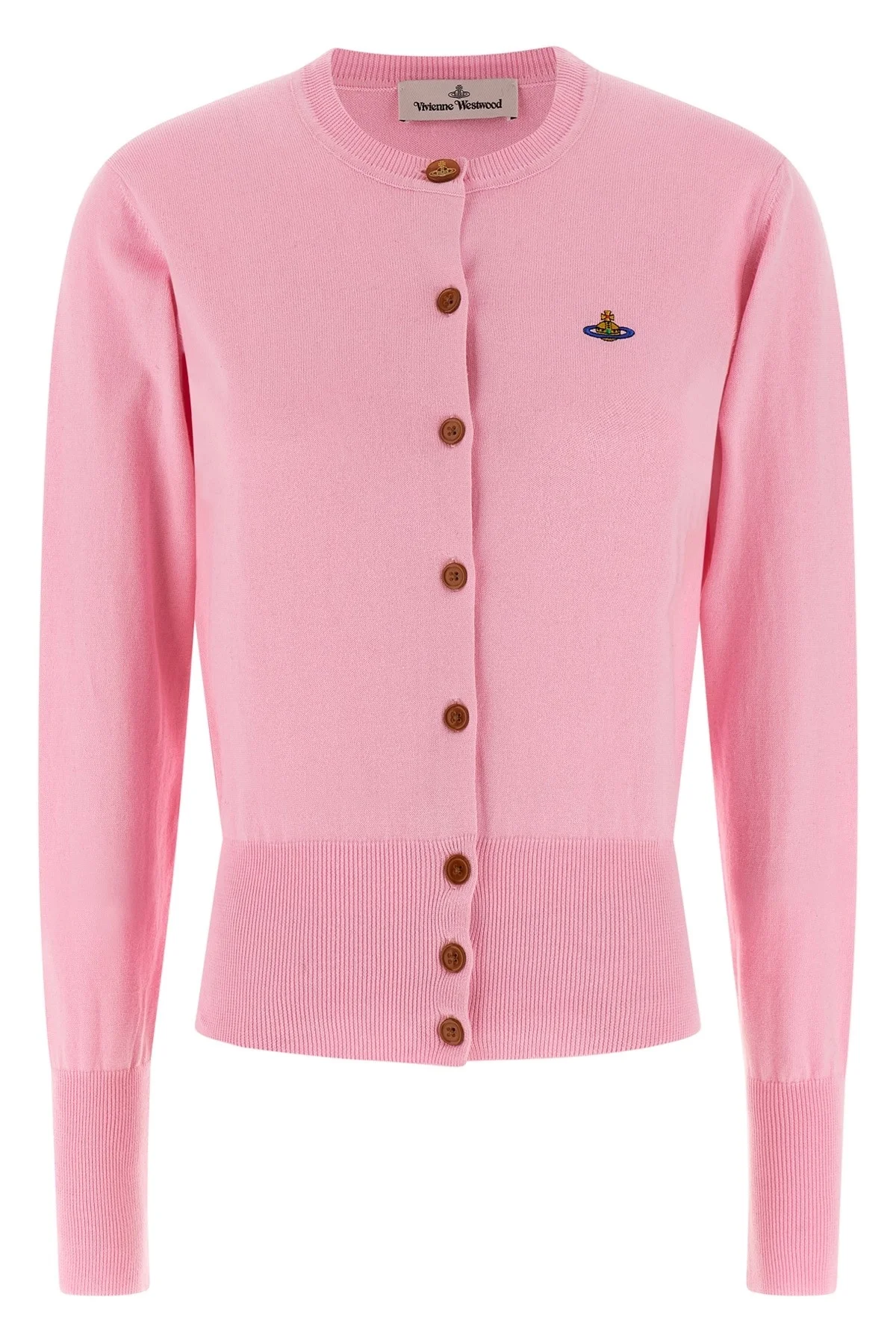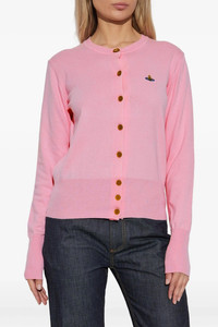 cod. 1803002PY001AG401 'Bea' wool and silk cardigan with Orb logo embroidery and front button closure, crew neck, long cuffed sleeves. Color: Pink Size & Fit: true to size fit Composition: 70% wool, 30% silk Made in: Italy