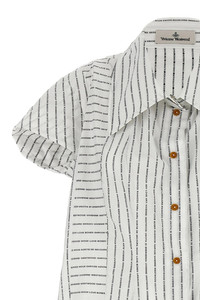cod. 1501005PW00RUA102 'Twisted Bagatelle' cotton shirt with all-over logo print, button closure, maxi collar, short curled tip. Color: White/Black Size & Fit: true to size fit Composition: 100% cotton