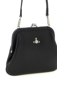 cod. 4B01001BWS000DN403 PU Vivienne clutch with hammered finish, front metal Orb logo, snap closure, removable handle. Color: Black Size & Fit: W 23 x H 18 x D 4 cm Composition: 100% polyurethane Made in: China