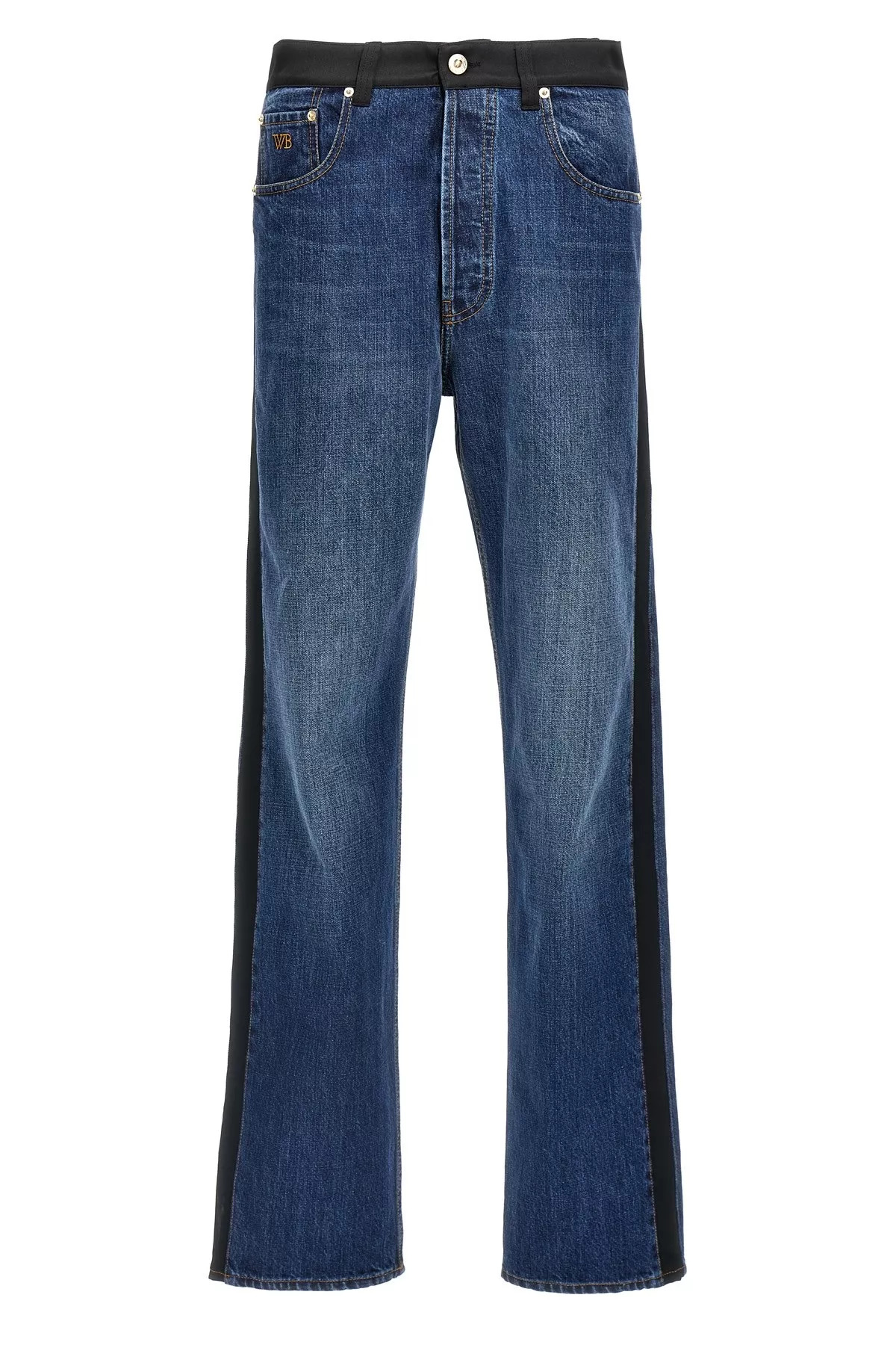 cod. US25DE02DE01599S 'Echo Denim' delave cotton denim jeans with satin details, front logo embroidery, high waist, five pockets, button closure, straight leg, back logo tag. Color: Blue Size & Fit: true to size fit Composition: 100% cotton Made in: Portugal