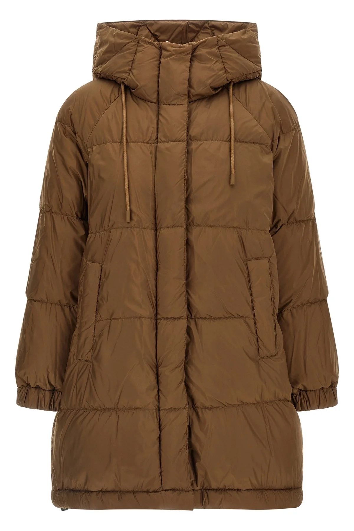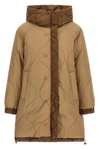 cod. 2525496062600009 'Anfora' reversible midi parka in waterproof canvas with horizontal striped quilting and 'cipolla' pattern quilting, goose down padding, adjustable hood, high neck, front zip and snap button closure, pockets, long raglan sleeves with elastic cuffs, drawstring on the hem. Color: Brown Size & Fit: Comfort fit Composition: 100% polyester Made in: Cambodia