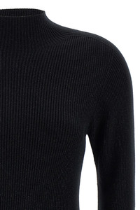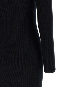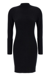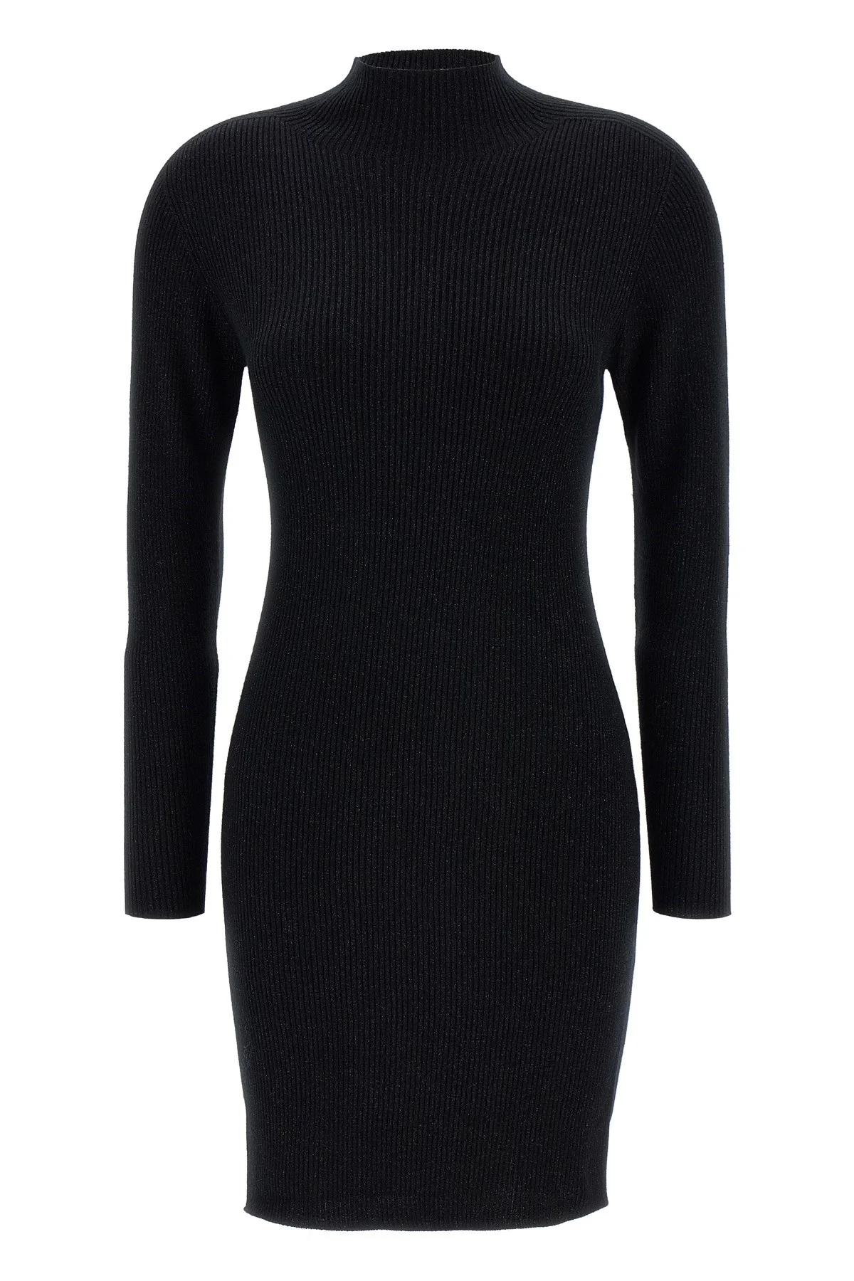 cod. 2525326013600001 'Buona1234' mini dress in stretch wool and lurex knit with ribbed knit, high neck, long sleeves. Color: Black Size & Fit: Slim fit Composition: 85% wool 10% polyamide 5% MF Made in: China