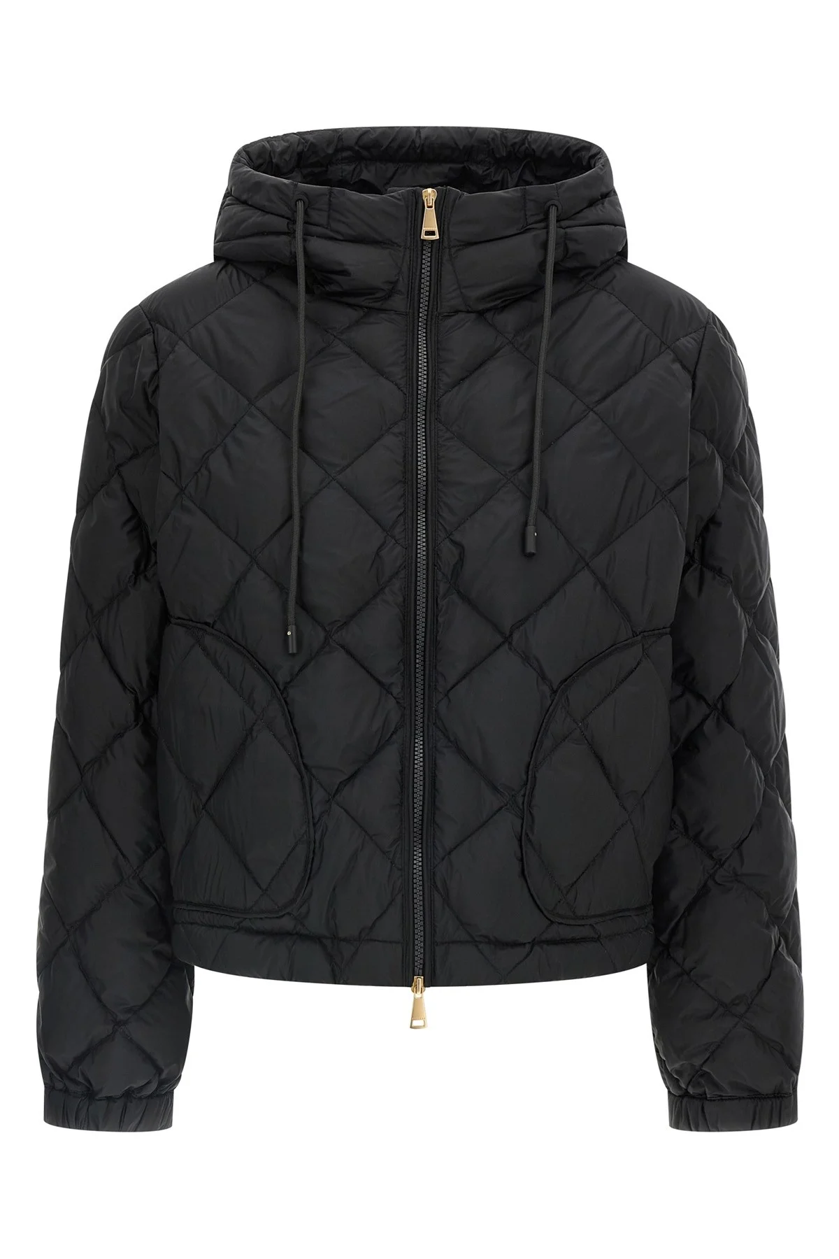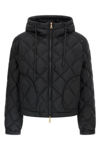 cod. 2525486032600005 'Eris' jacket in diamond-quilted technical waterproof fabric with goose down padding, adjustable hood, top zip closure, pockets, long sleeves with elastic cuffs, drawstring on the hem. Color: Black Size & Fit: Boxy fit Composition: 100% polyester Made in: Cambodia