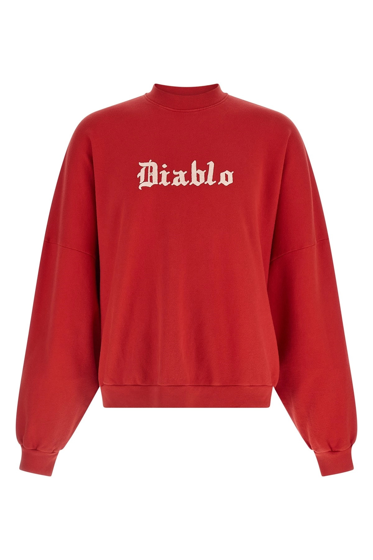 cod. WCJSY0118006 Vintage wash brushed cotton 'Diablo Hooligan' sweatshirt, front 3D washed serigraph print, crew neck, long cuffed sleeves and dropped shoulders. Color: Red Size & Fit: oversized fit Composition: 100% cotton Made in: United States