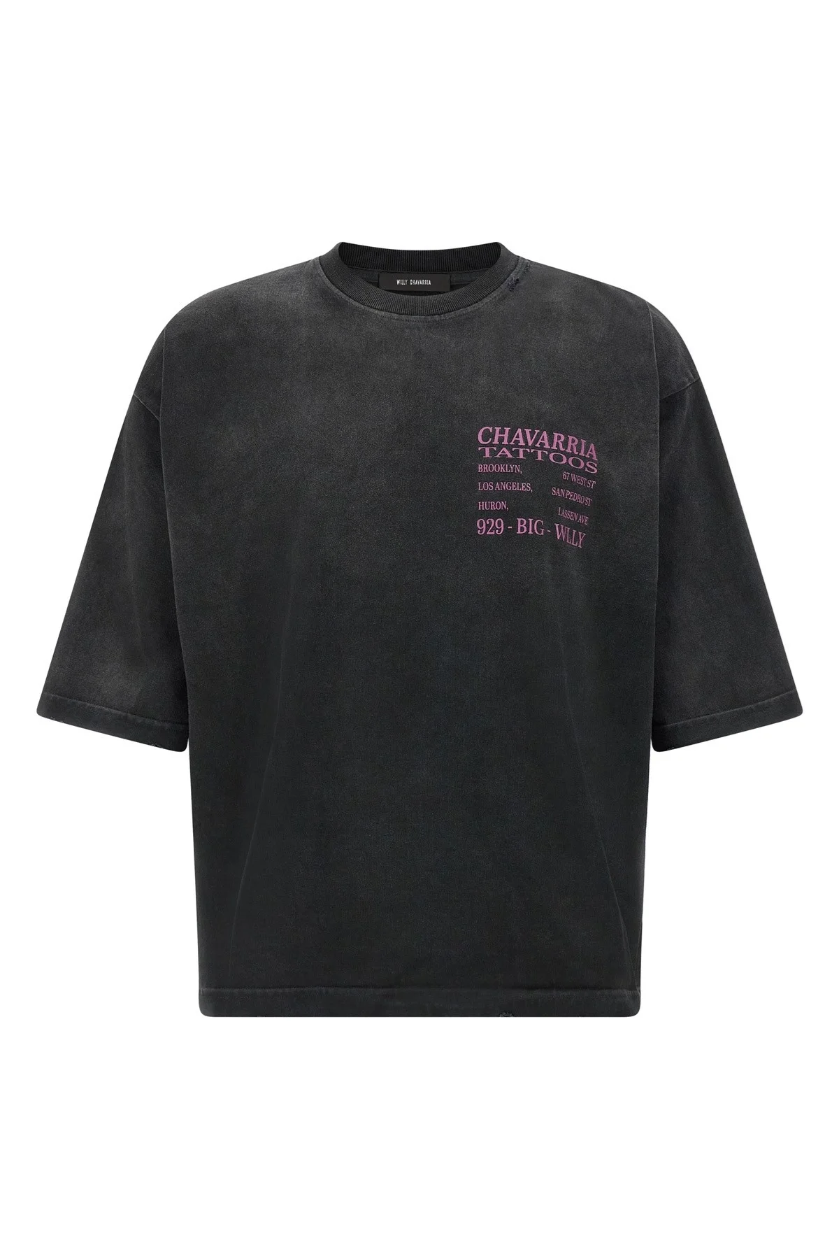 cod. WCJSY0178001 'Willy Tattoo - Buffalo Tee' cotton t-shirt with rips, print on the front and back, crew neck, short sleeves with dropped shoulders. Color: Black Size & Fit: oversized boxy fit Composition: 100% cotton Made in: United States