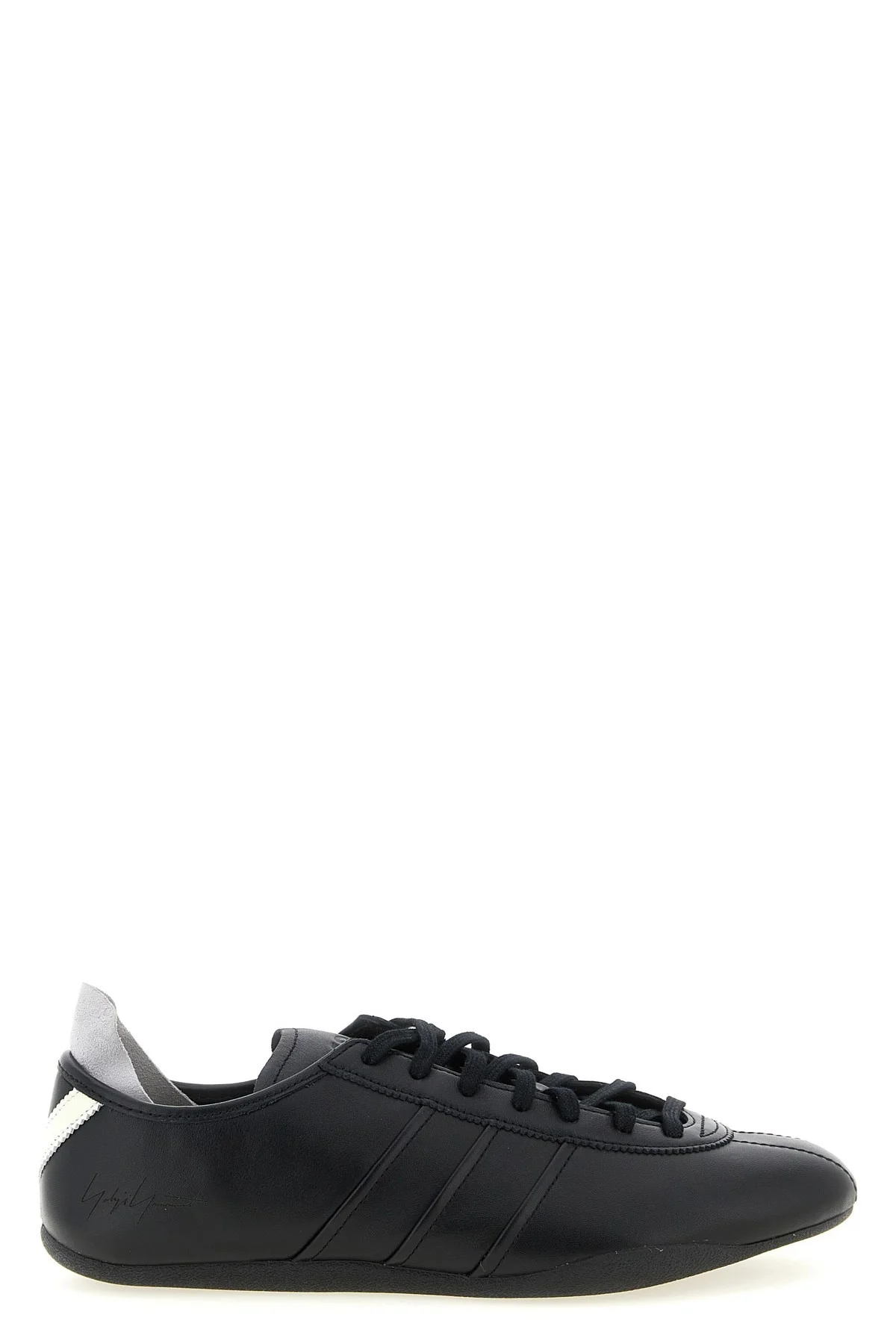 cod. KI0884BLACK 'Y-3 Tokyo' flexible leather sneakers, contrast leather Y-detail on the heel, side laser logo, ultra-low silhouette, cold-bonded structure, lace-up closure, rubber sole. Color: Black Size & Fit: UK UNISEX Composition: 100% calfskin leather (Bos Taurus) Made in: China