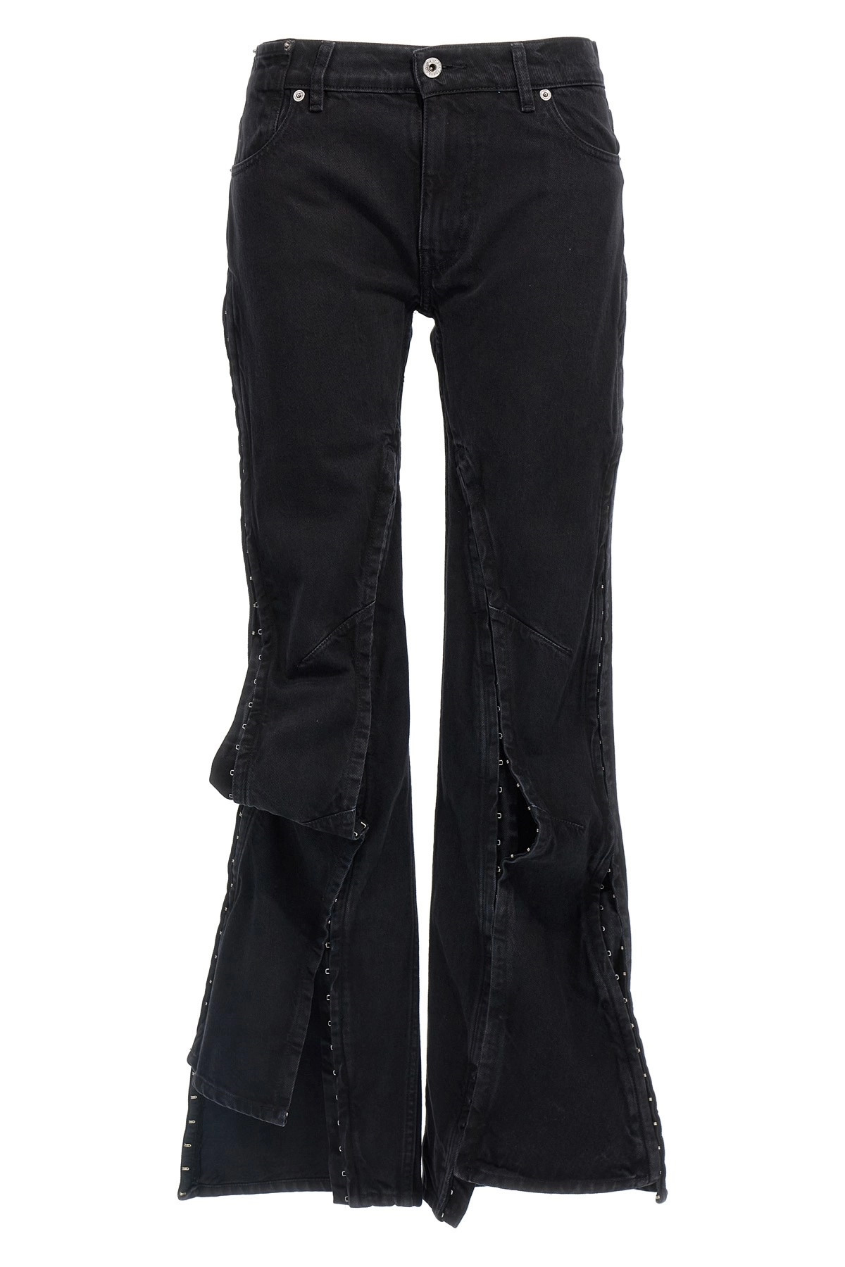 cod. 107PA002EVERGREENBLACK 'Hook and Eye' cotton denim jeans with zip and button closure, five pockets, leather logo tag, hook detail on the front legs. Color: Black Size & Fit: Slim fit Composition: 100% cotton Made in: Portugal