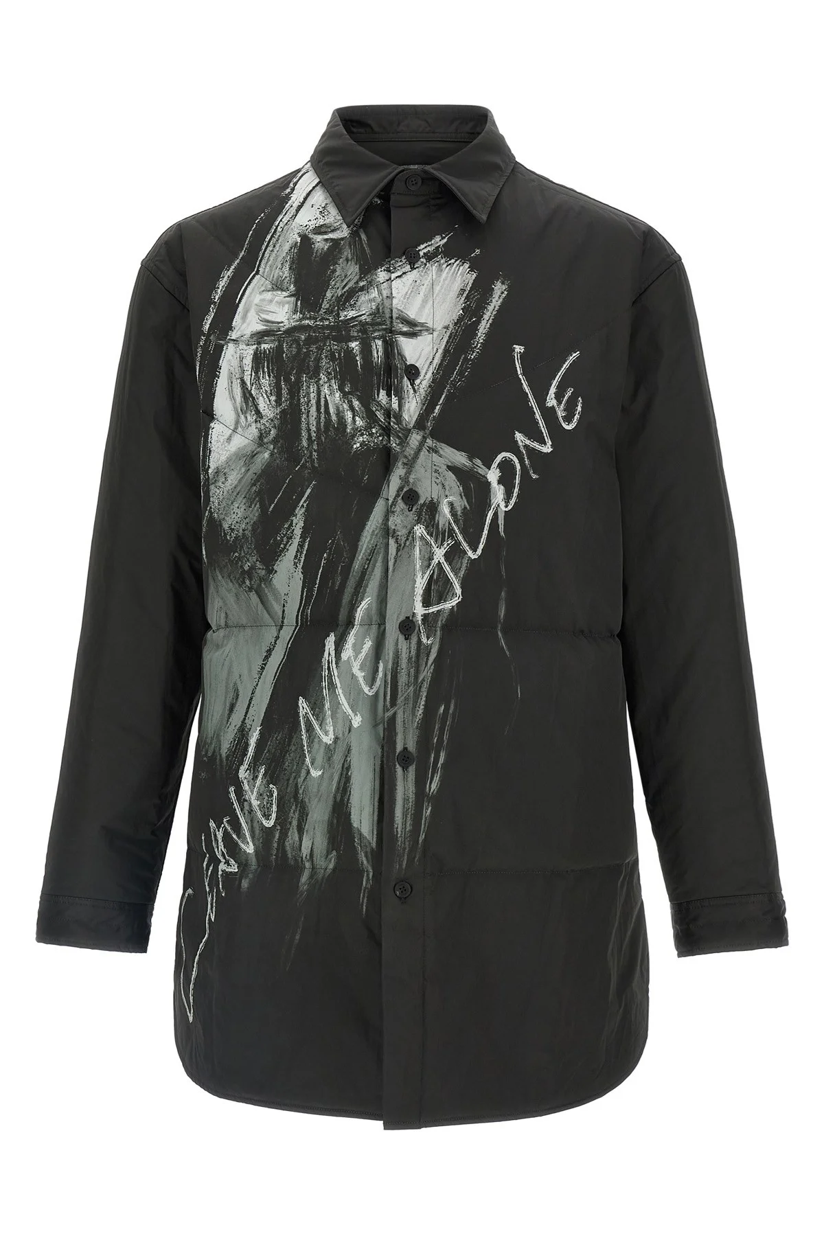 cod. HLB41909BLACK1 Lightly padded nylon overshirt with front print, collar, front button closure, side slits, long sleeves with cuffs. Color: Black Size & Fit: True to size fit Composition: 100% polyester Made in: Japan