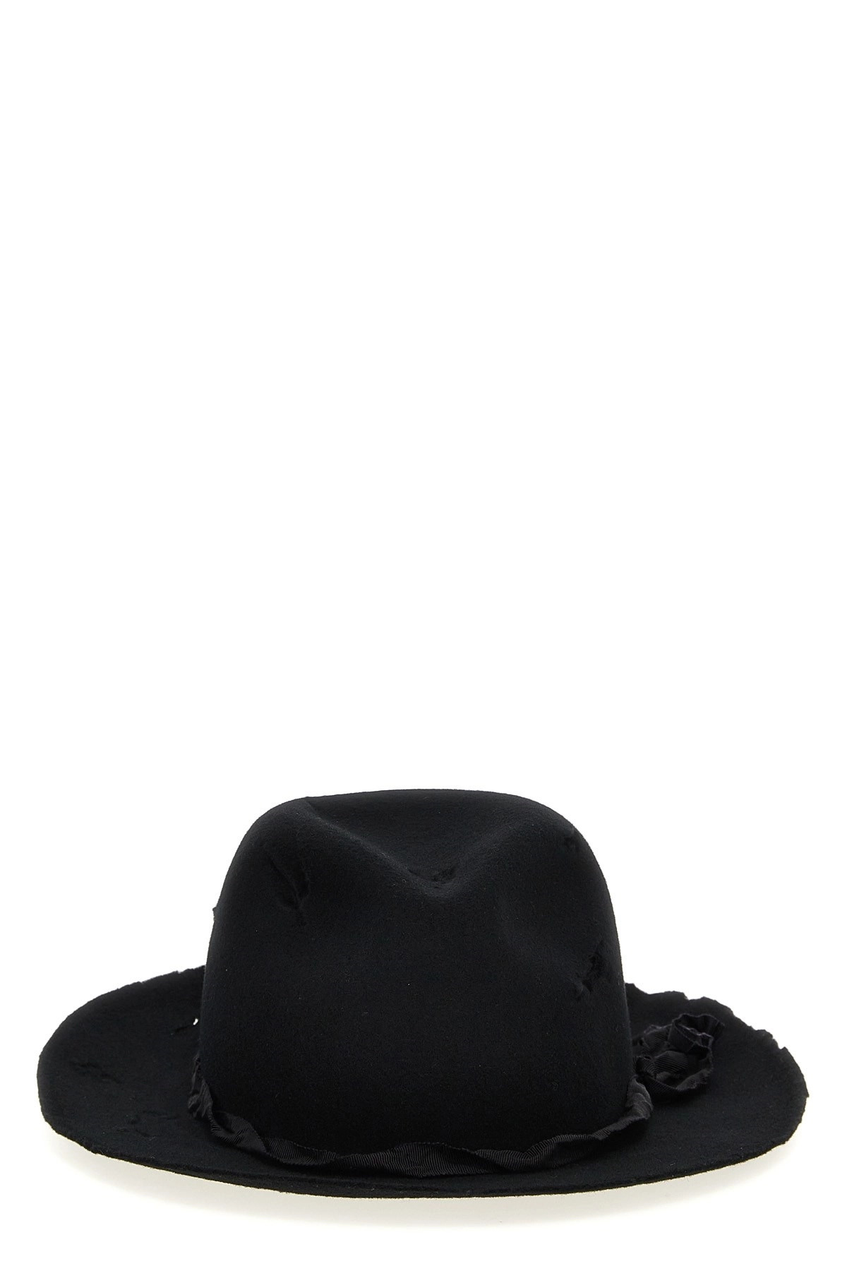 cod. HPH05160BLACK2 Soft' hat in used-effect wool with rips, tone-on-tone grosgrain ribbon. Color: Black Size & Fit: true to size fit Composition: 100% wool Made in: Japan