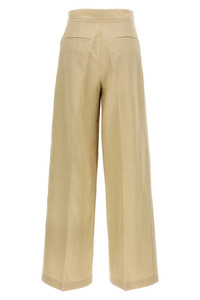 cod. 25E25EYP037XXCOLIA2235 Cotton and linen blend pants, pleats, high waist model, wide and straight leg with pressed pleat, zip and button closure, pockets. Color: Beige Size & Fit: true to size fit French size Composition: 58% co, 30% li, 12% pa Made in: France