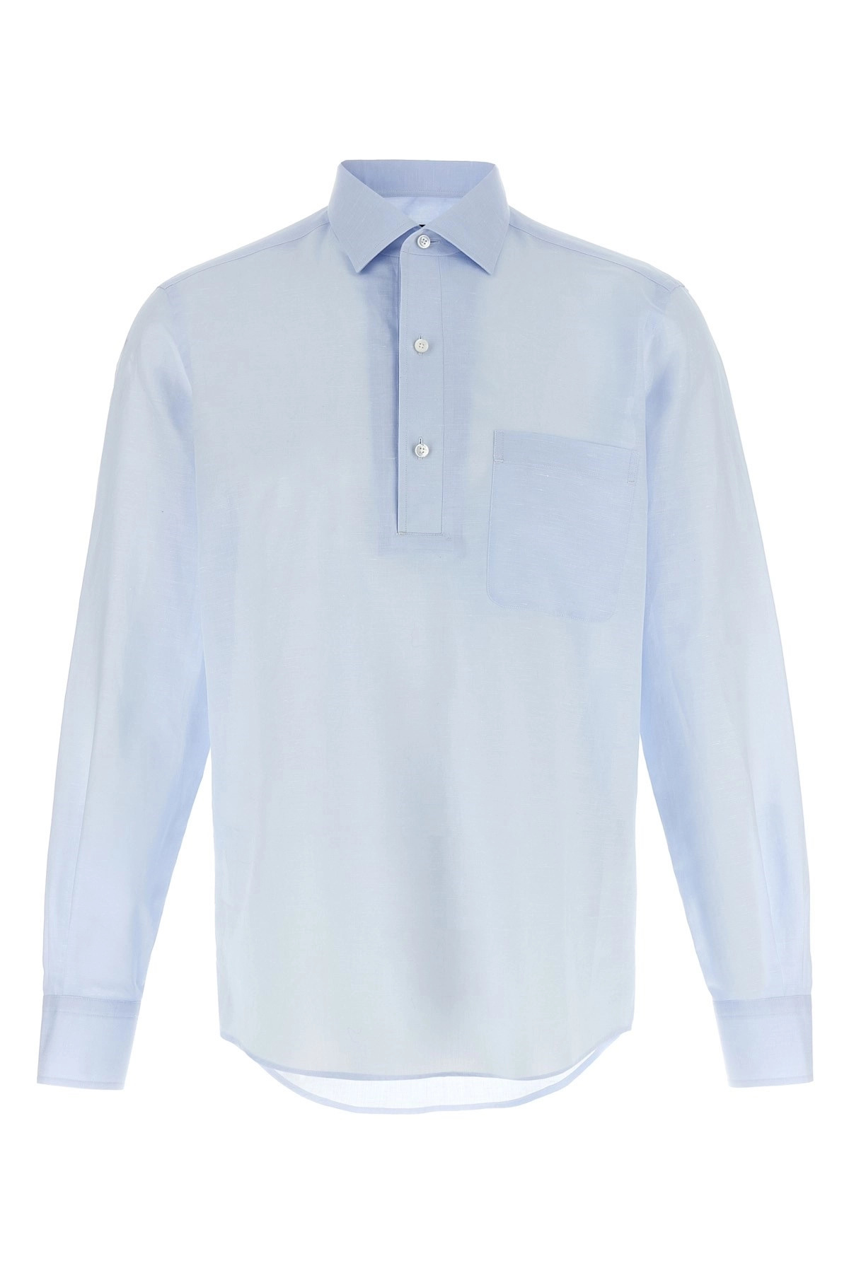 cod. UFX37A9SRF13011 Linen blend shirt, collar, three buttons front closure, long cuffed sleeves. Color: Light Blue Size & Fit: True to size fit Composition: 68% cotton, 32% linen Made in: Italy