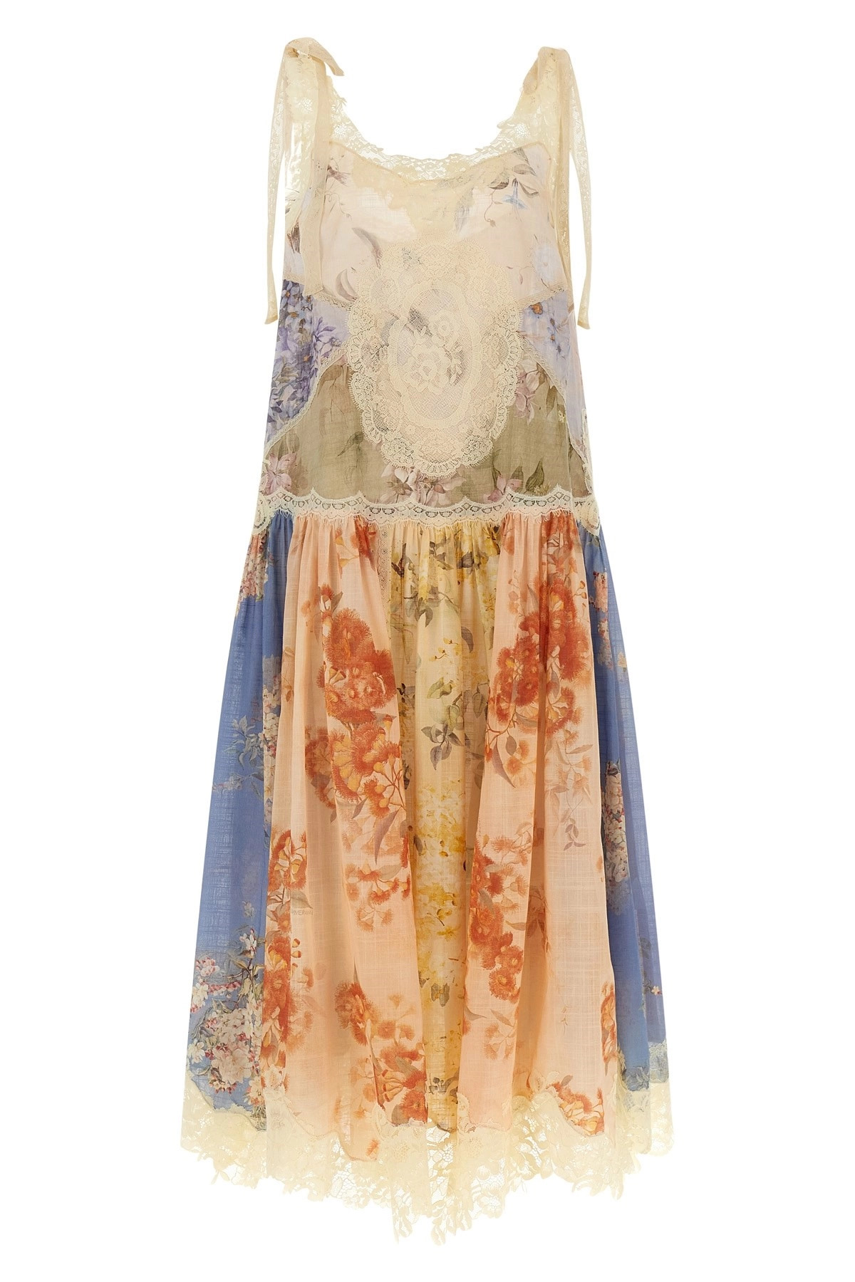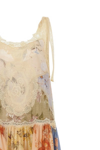 cod. 4596DSS255SPLI Cascadian' midi dress in patchwork-effect floral print cotton with lace inserts, lace knotted shoulder straps. Color: Multicolor Size & Fit: True to size fit Composition: 100% cotton Made in: China