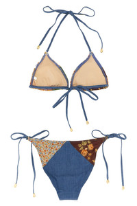 cod. 4306WSS252SPLI 'Lucky Cotton Mini Tri' cotton bikini with patchwork panel construction, triangle top with laces, briefs with medium cover and lacing on the sides, metal details. Color: Multicolor Size & Fit: true to size fit Composition: 100% cotton Made in: China