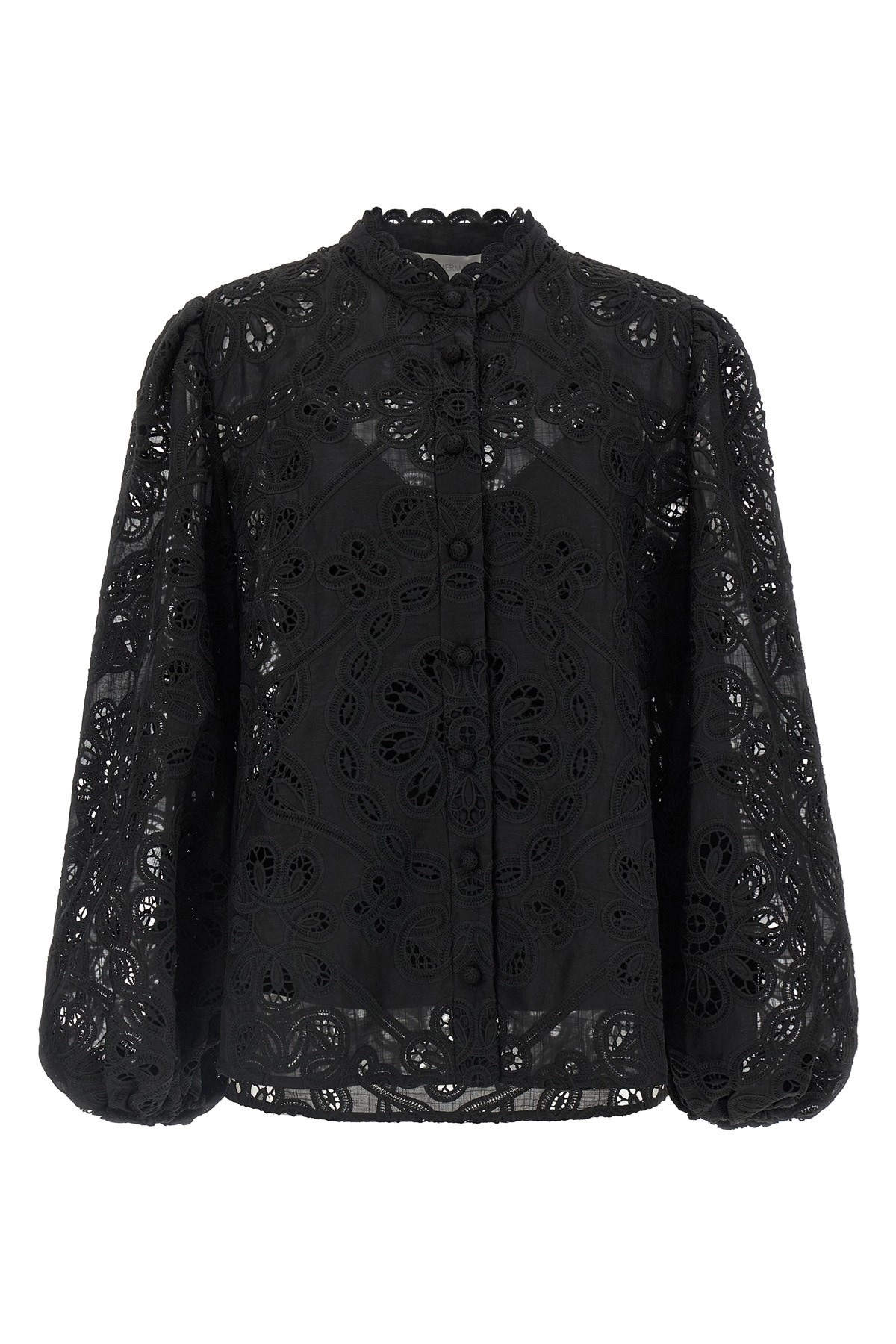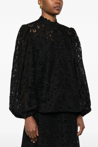 cod. 4253TSS251BLK 'Rhiannon' embroidered and perforated cotton shirt, mandarin collar, front closure with embroidered buttons, long sleeves wide at the hem and elasticated cuffs. Color: Black Size & Fit: True to size fit Composition: 100% polyester Made in: China