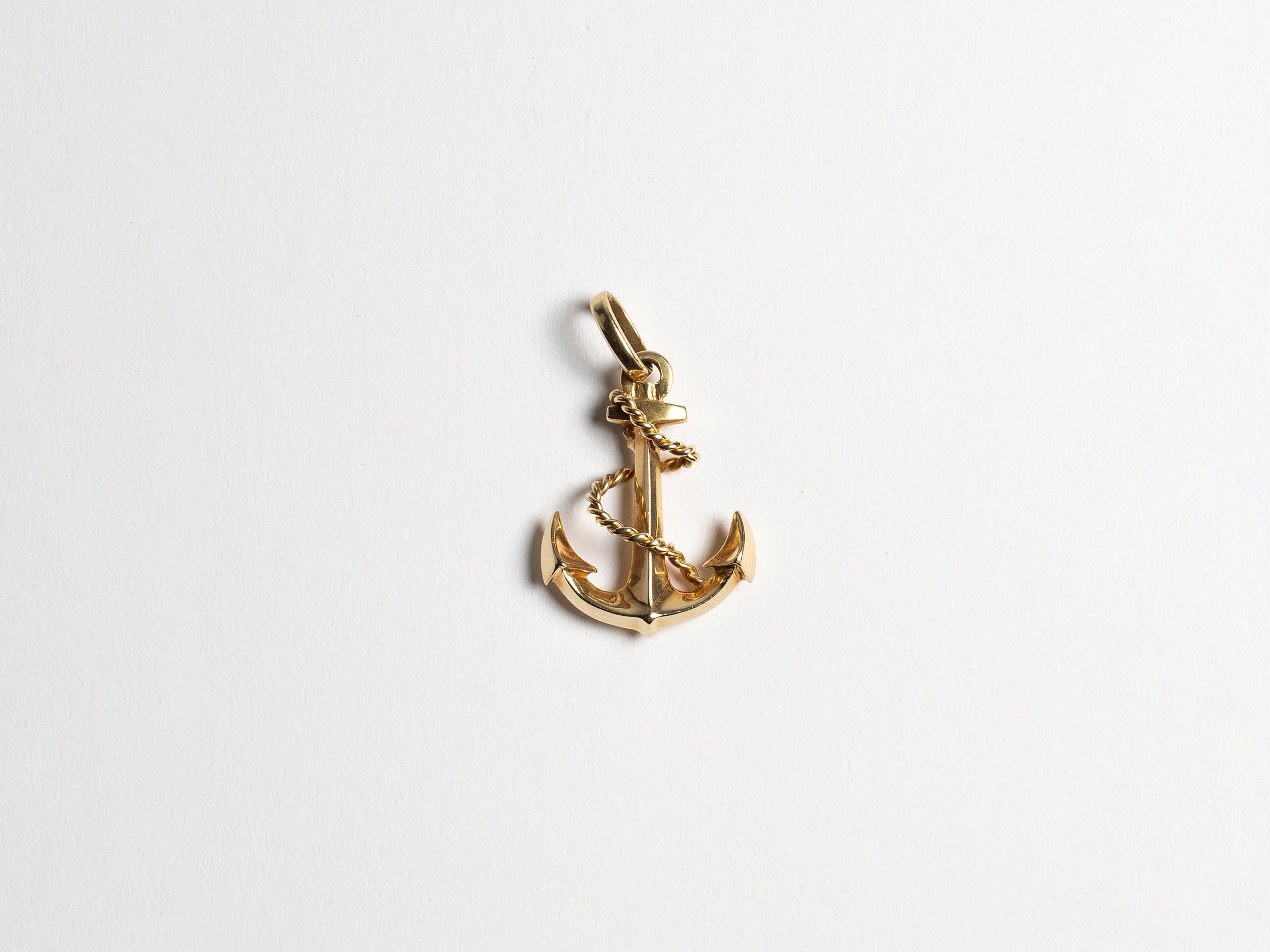Anchor pendant in solid 18kt gold, Italian, circa 1970s. A symbol of stability, security, and hope, the form is wrapped with a twisted rope. Sourced by Will Martindale, Classical Gem Hunter, a curator of historical jewellery pieces, based in Mayfair. Will is drawn to pieces with an authentic sense of beauty; he believes jewellery is made to be worn, held and lived in. These pieces were selected by Jonathan Anderson, bridging the worlds of antiquity and fine craftsmanship. Details - Colour: Gold - Composition [Main]: 100% 18kt Gold - Made in: Italy - SKU: JY0279OT0096120